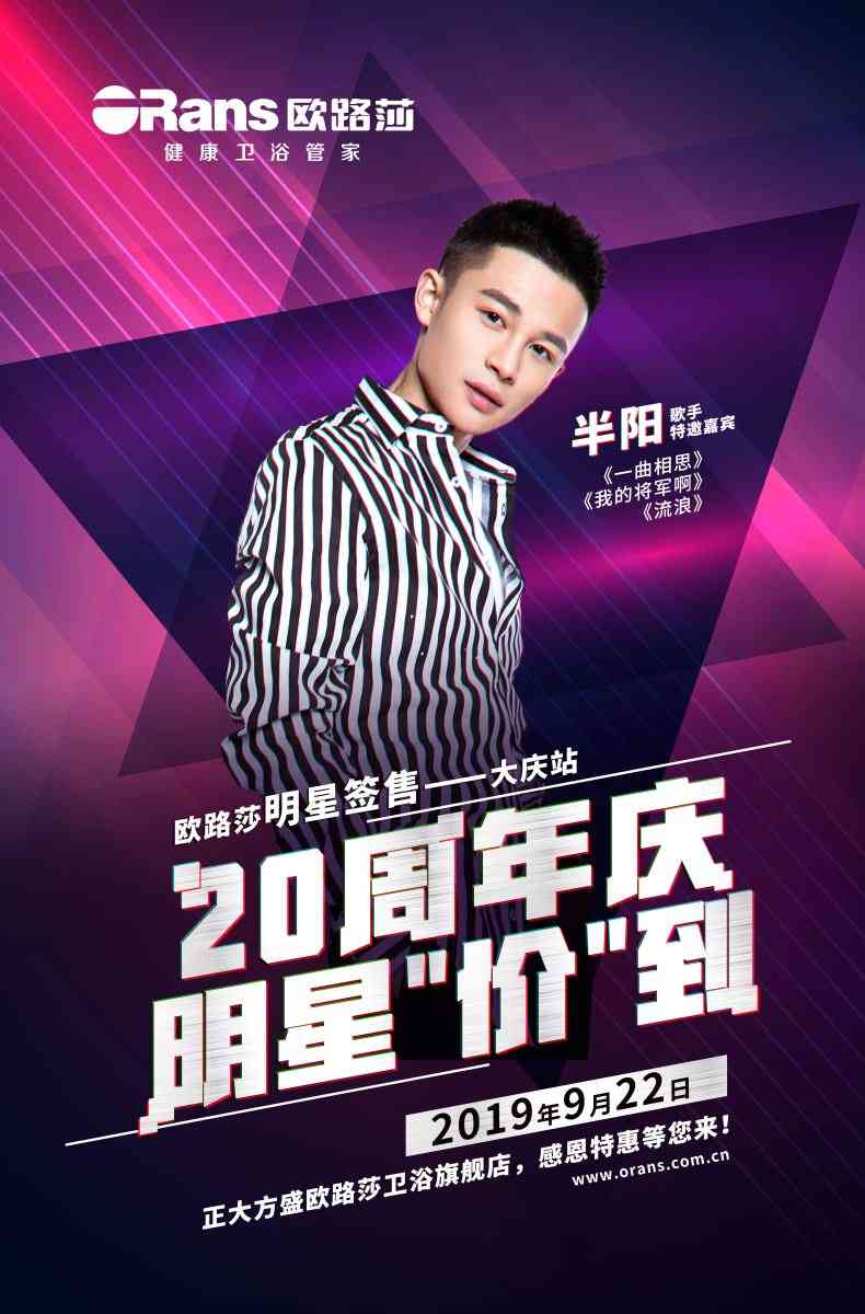 9月22日,歐路莎明星簽售—大慶站即將迎來重磅人物!大慶正大方盛衛浴旗艦店,一場視聽的盛事,豐富的節目表演,特邀嘉賓歌手—半陽前來助陣,更有推出多重優惠福利,勢必成為一場精彩的衛浴購物盛宴。
