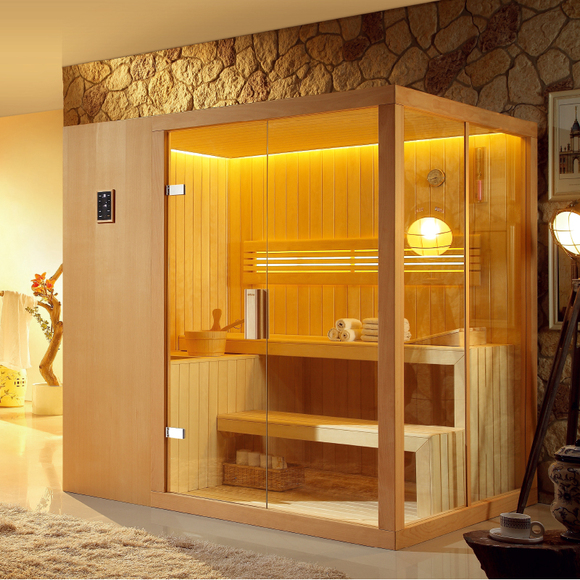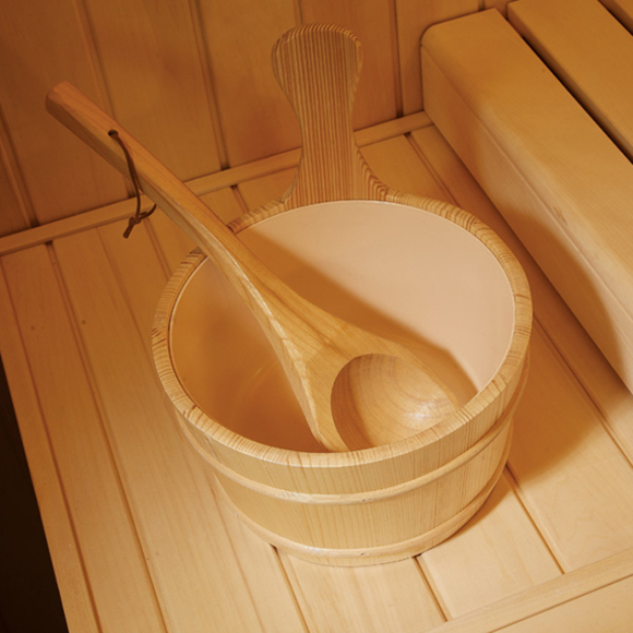 桑拿爐、環繞暖光頂燈、夢幻彩燈靠背、觸控系統(含FM收音、藍牙音樂、智能童鎖、臭氧消毒)、干濕溫度計、沙漏、桑拿石、木桶、木勺、暖光靠背、干蒸爐圍欄、置物板、坐凳及腳凳豎裙。