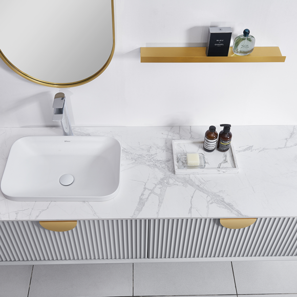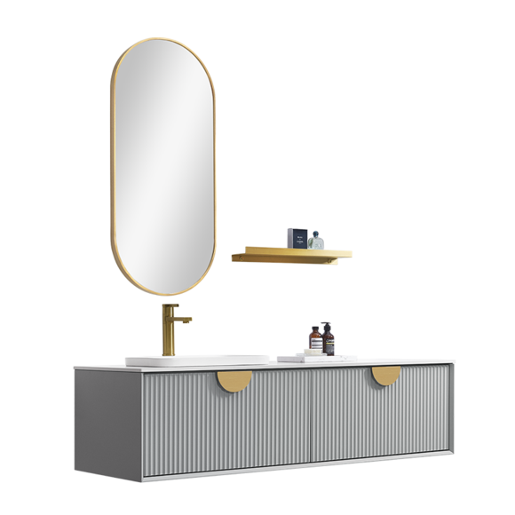 波紋線條元素給衛浴空間增添了幾分靈動,與鎏金圓弧拉手巧妙搭配,盡顯優雅時尚。