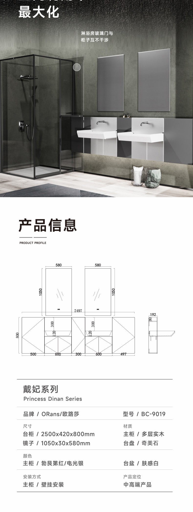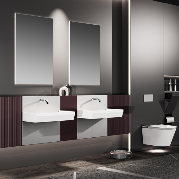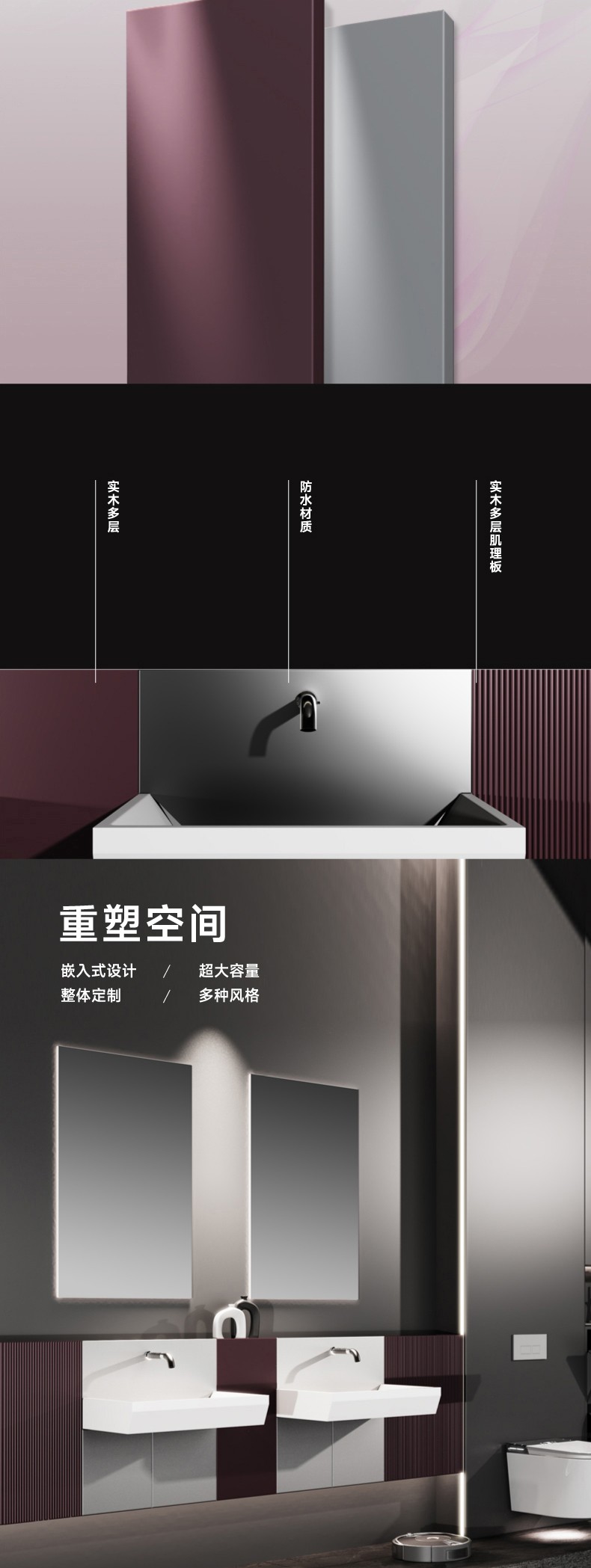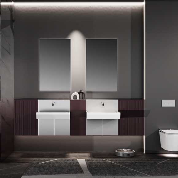 主柜顏色:勃艮第紅/電光銀 臺盆顏色:膚感白 材 質(zhì):多層板/奇美石/智能鏡 安裝方式:掛壁安裝